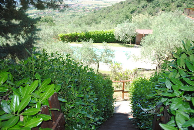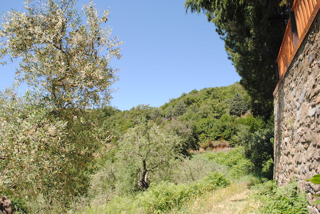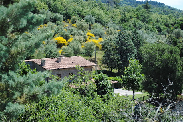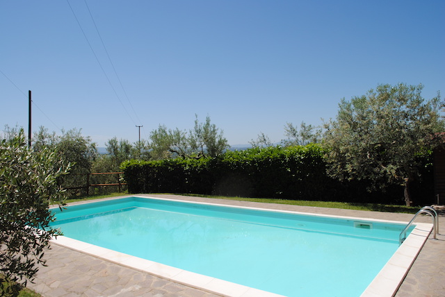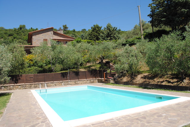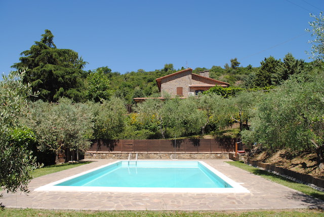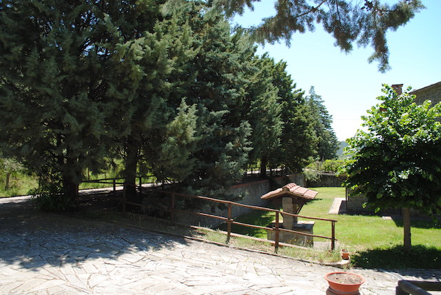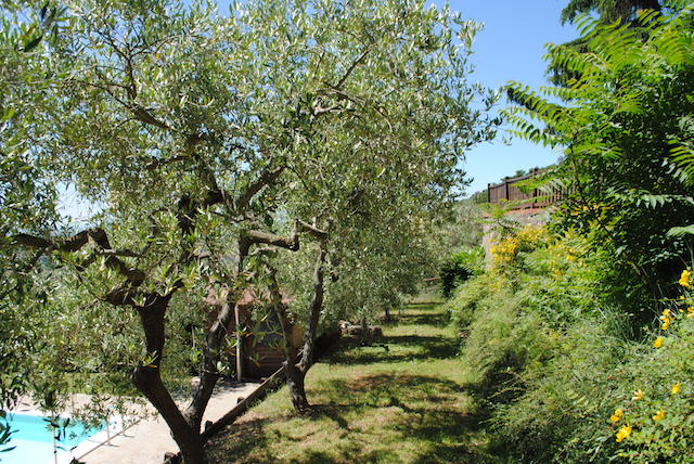La proprietà comprende circa 12,50 ettari di terreno su cui ricade una rimessa in pietra di mq 75 c.a. con pavimentazione esterna in porfido, 2 pozzi, la piscina di metri 10 x 5 oltre a 3 ettari di oliveto il tutto completamente recintato.
